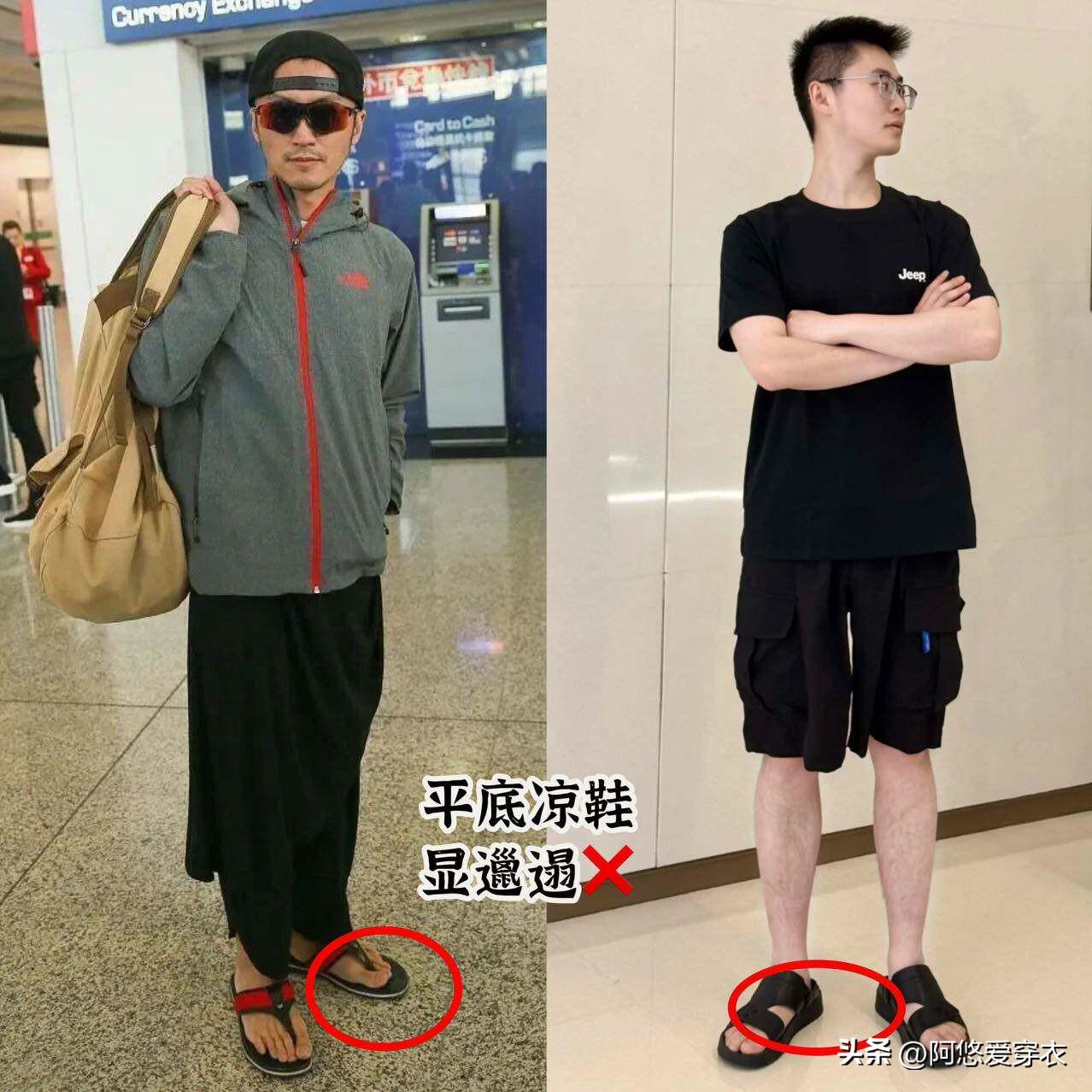 最後再說人字拖,天氣熱了之後大家都開始穿拖鞋,覺得方便涼快還透氣,但人字拖真的會“毀氣質於無形”!穿着這樣的鞋子,會露出腳趾、腳跟,哪怕你上半身穿得再精神抖擻,也會顯得邋遢油膩,而且人字拖對身材沒有支撐力,穿着很容易駝背聳肩,顯得整個人精氣神很差,不修邊幅的感覺實在是太掉價了。