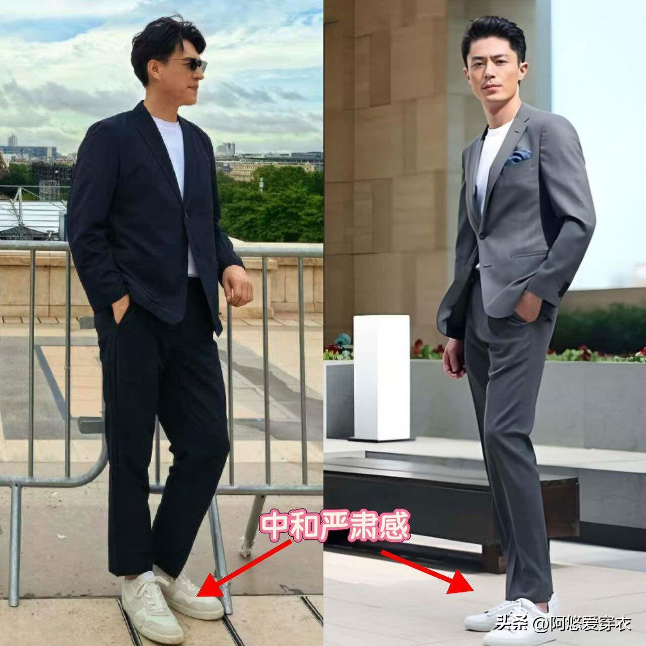 穿鞋的時候,入門級的穿搭小白都是根據穿搭的風格去選合適的鞋子,但這麼穿的風格太單調了,如果你想要看着更時髦,可以嘗試混搭,比如西裝搭配小白鞋,屬於休閒風和正式感穿搭的碰撞,能大幅度提升你的整體潮流感,顯得更加時髦。