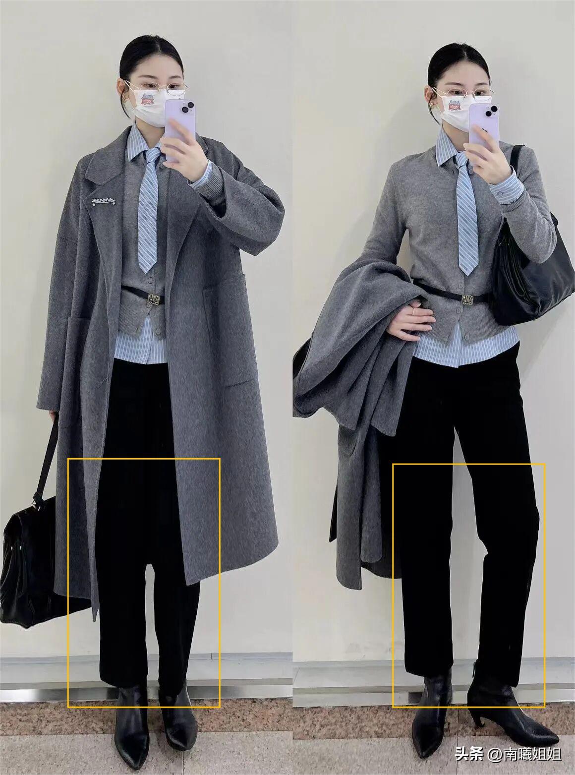 這是很多人夢寐以求的天生好腿型,雖然穿衣限制少,但選不對也容易顯得單薄、沒氣場。穿搭核心是 “增加量感與輪廓,避免拖沓”。儘量避免過於寬鬆、毫無版型的超長拖地闊腿褲,過於巨大的褲管會“壓垮”纖細的身形,顯得人沒有精神,撐不起來,反而浪費了身高優勢。