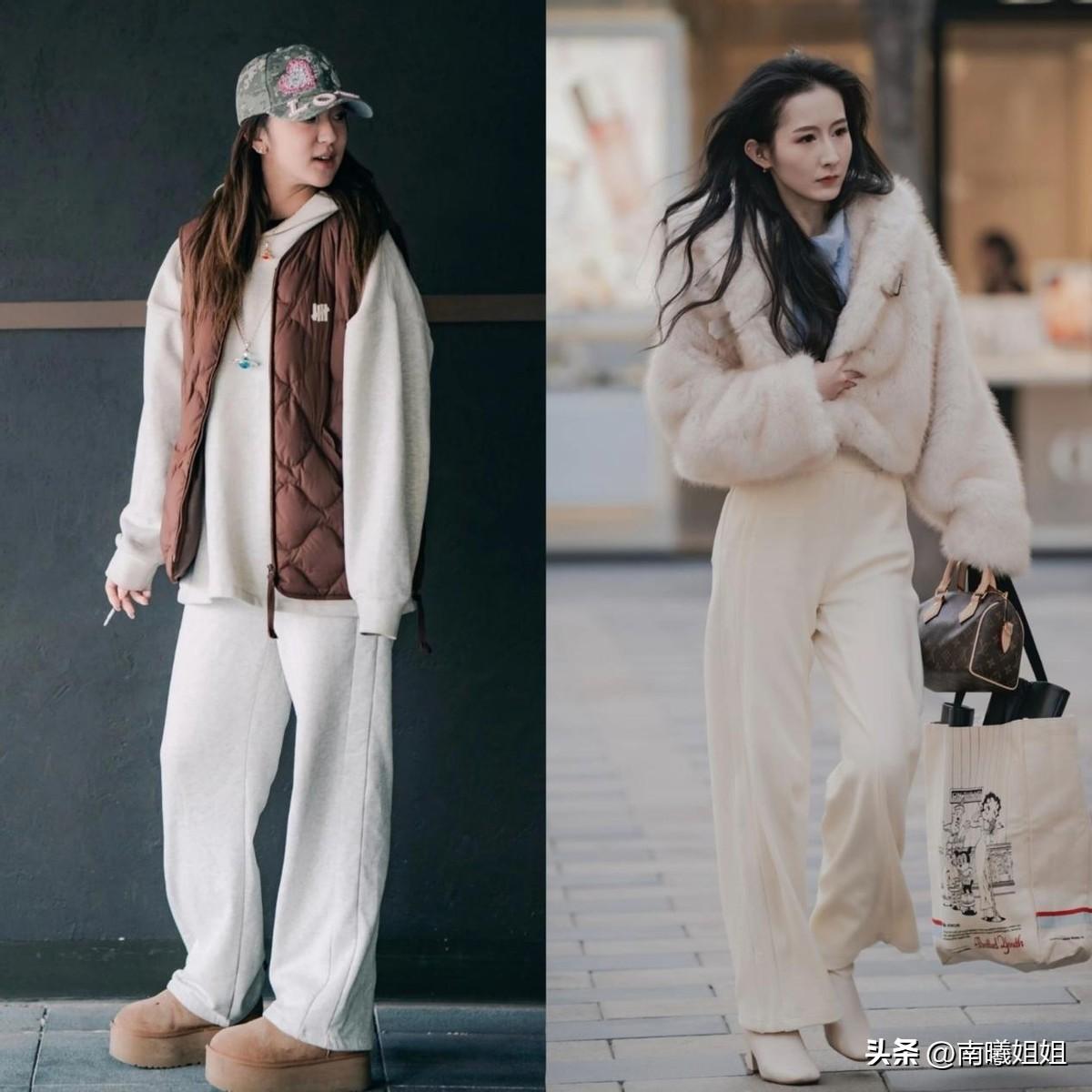 在搭配這些褲裝時也要關注一下鞋子還有褲子之間的銜接感,千萬不要搭配得過於厚重,所以在選擇褲裝和鞋子時最好還是要留足一定的空隙,像九分褲搭配這種淺口單鞋就更有利於修飾身材,也能夠藉助這種合適的露膚來避免搭配得太沉悶。反倒是左邊這種長褲和短靴相結合,把腿部的肌膚完全遮擋住,就會顯得厚重。