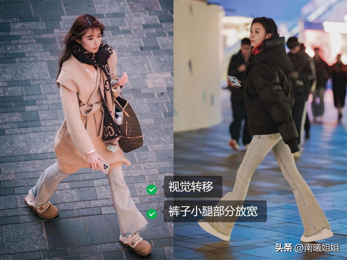 O型X腿被公認爲是問題最大的腿型主要原因在於膝蓋和腿部的整體線條不夠筆直,O型腿膝蓋向外,X型腿膝蓋向內,都會在視覺上形成彎曲感,影響腿長。穿搭核心是 “修飾線條,營造直線感”。那麼在褲子的挑選上貼腿的打底褲、鉛筆褲,這些是完全不能考慮的,會放大腿型缺陷,視覺上顯腿短。