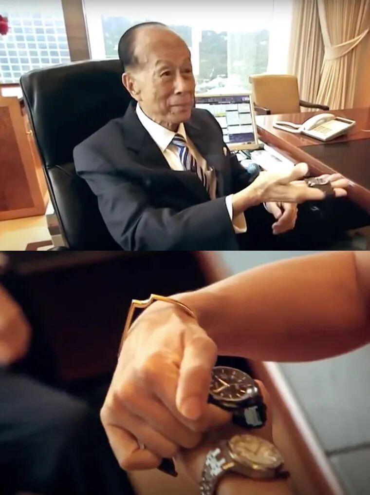 過去的年報硬照、官方照片裏,李澤鉅一直戴的是一塊圓形不鏽鋼鋼帶表。這次突然換成了父親送的AP白金錶,反差很明顯。