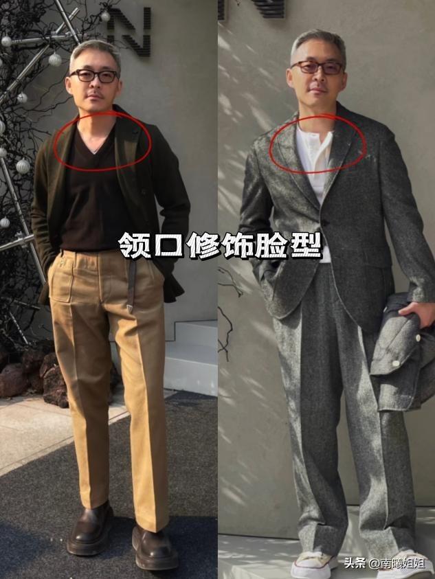 隨着年齡增長,身體線條會變得柔和甚至鬆散,這時候需要通過服裝的“結構感”來重新塑造輪廓。學會利用層次來打造你的形象細節,不要只穿一件單衣。嘗試“T恤/襯衫 + 針織開衫/馬甲 + 休閒西裝/夾克”的三層穿法。層次感不僅能應對溫差,更能通過不同材質的疊加,增加上半身的厚度與立體感,掩蓋肚腩。