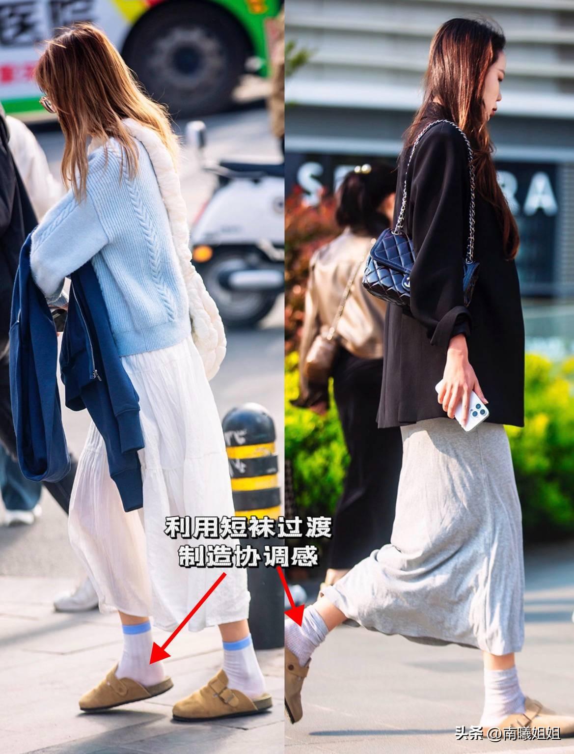 ①搭配長裙,要用短襪過渡更和諧