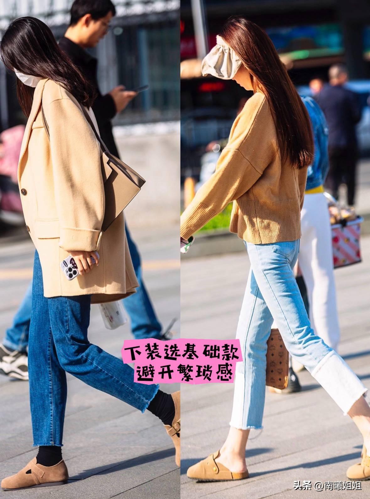 下裝的挑選固然重要,但設計上不能太繁瑣,儘量選擇基礎款“過渡”即可,例如小白裙、牛仔煙管褲、小黑褲等等。