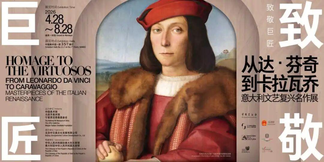 由中國美術館、意大利烏菲齊美術館和寶豐集團·燕寶慈善基金會聯合主辦的“致敬巨匠:從達·芬奇到卡拉瓦喬——意大利文藝復興名作展”將於2026年4月28日至8月28日在中國美術館展出。展覽彙集由中國美術館和烏菲齊美術館共同甄選的36件意大利文藝復興時期傑作,匯聚20餘位藝術巨匠的經典之作,爲中國觀衆呈現文藝復興藝術的發展脈絡與人文精神。