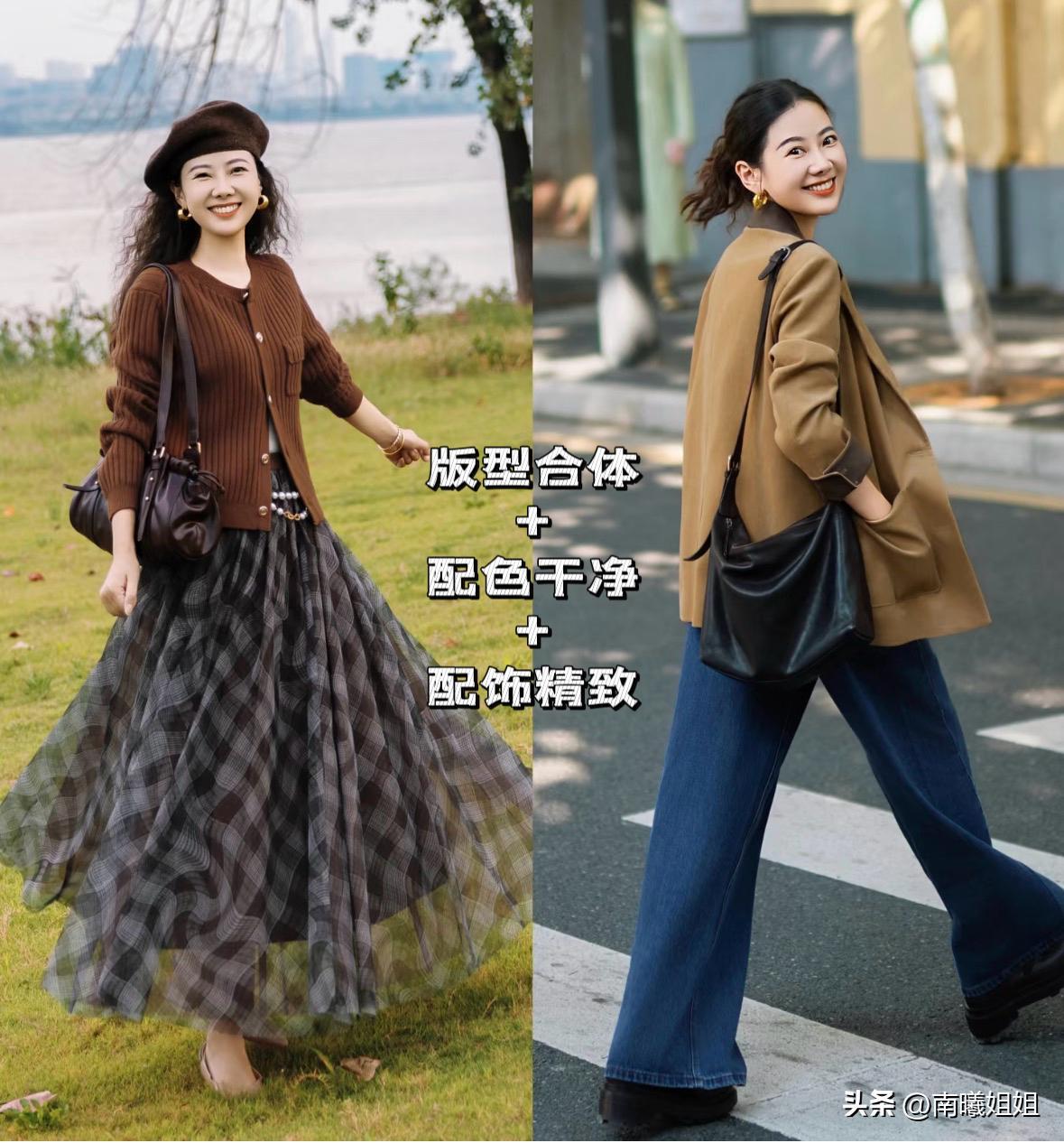 衣服版型選對,氣質直接翻倍,上衣優選正肩,利落有精氣神,下裝多穿直筒褲、煙管褲A字裙,規避肥大臃腫的現象。
