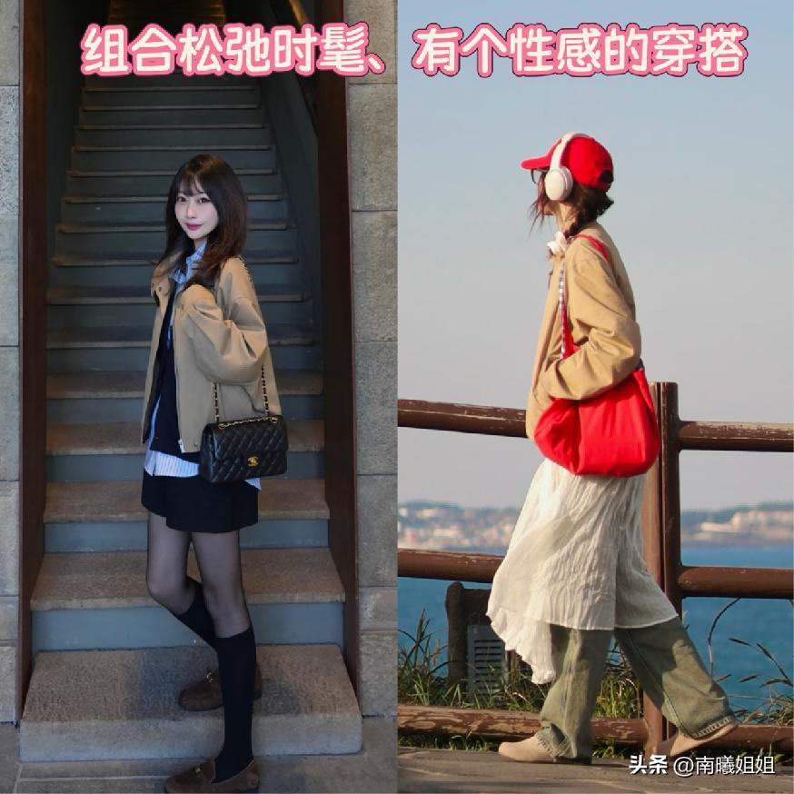 夾克外套這樣的搭配,建議各位女性可以優先於選擇在當下入選卡其色或者是大地色爲主,色系的狀態非常的百搭好看,而且也比較適用合運用於絕大多數的年齡階段以及場合當中。而且這樣的色系基礎,但是不單調,對於我們肌膚的狀態以及以及最終所能夠襯托出來的身形穩定度都是最佳的,大家可以將其作爲優選考慮。