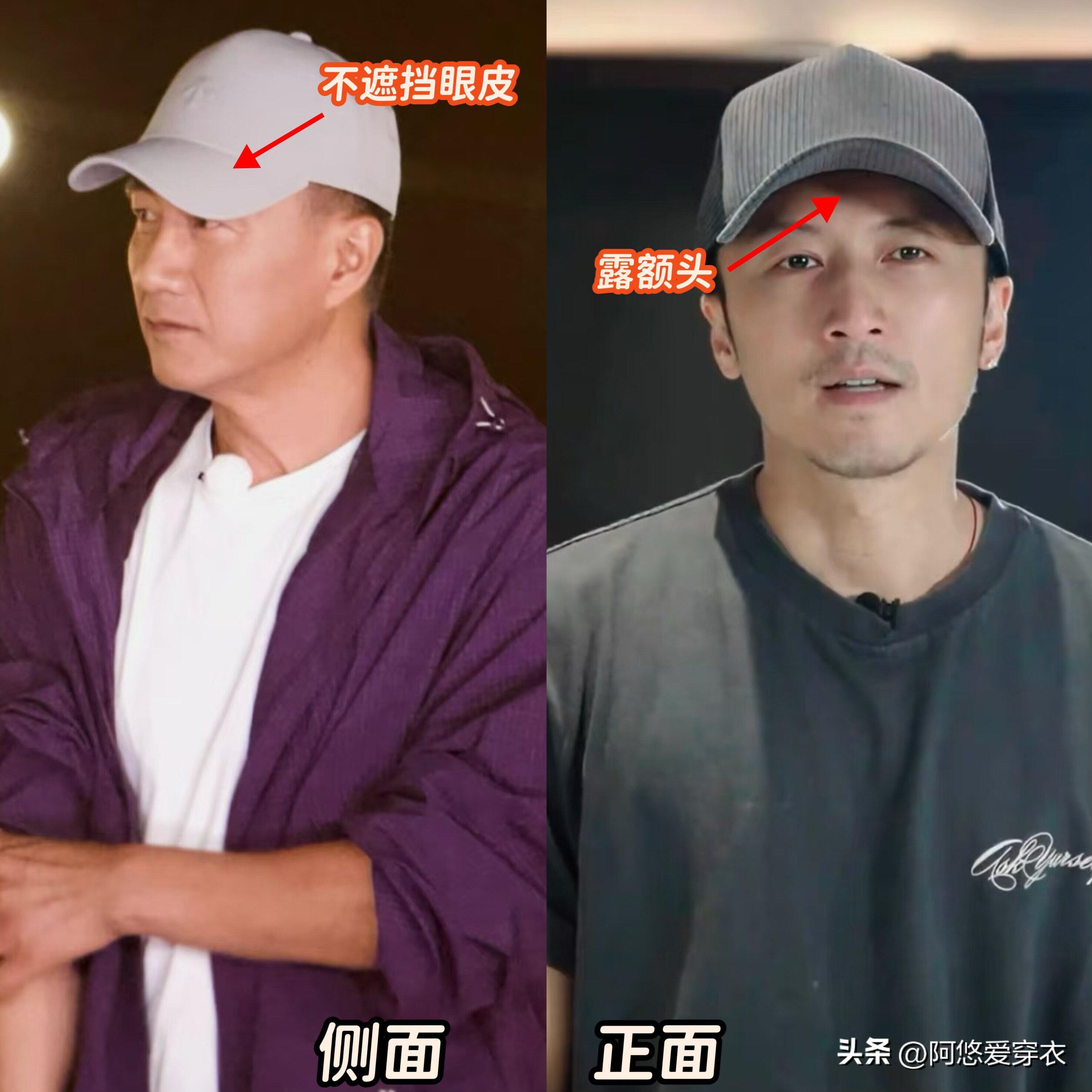 你看下面這些男神戴的棒球帽,都屬於高帽頂、帽檐加長的款式,但正面不會把我們的額頭遮住,側面不會遮擋住眼皮,整體看着還是很利落清爽的,剛好可以兼顧修飾臉型以及提升時尚感的需求。