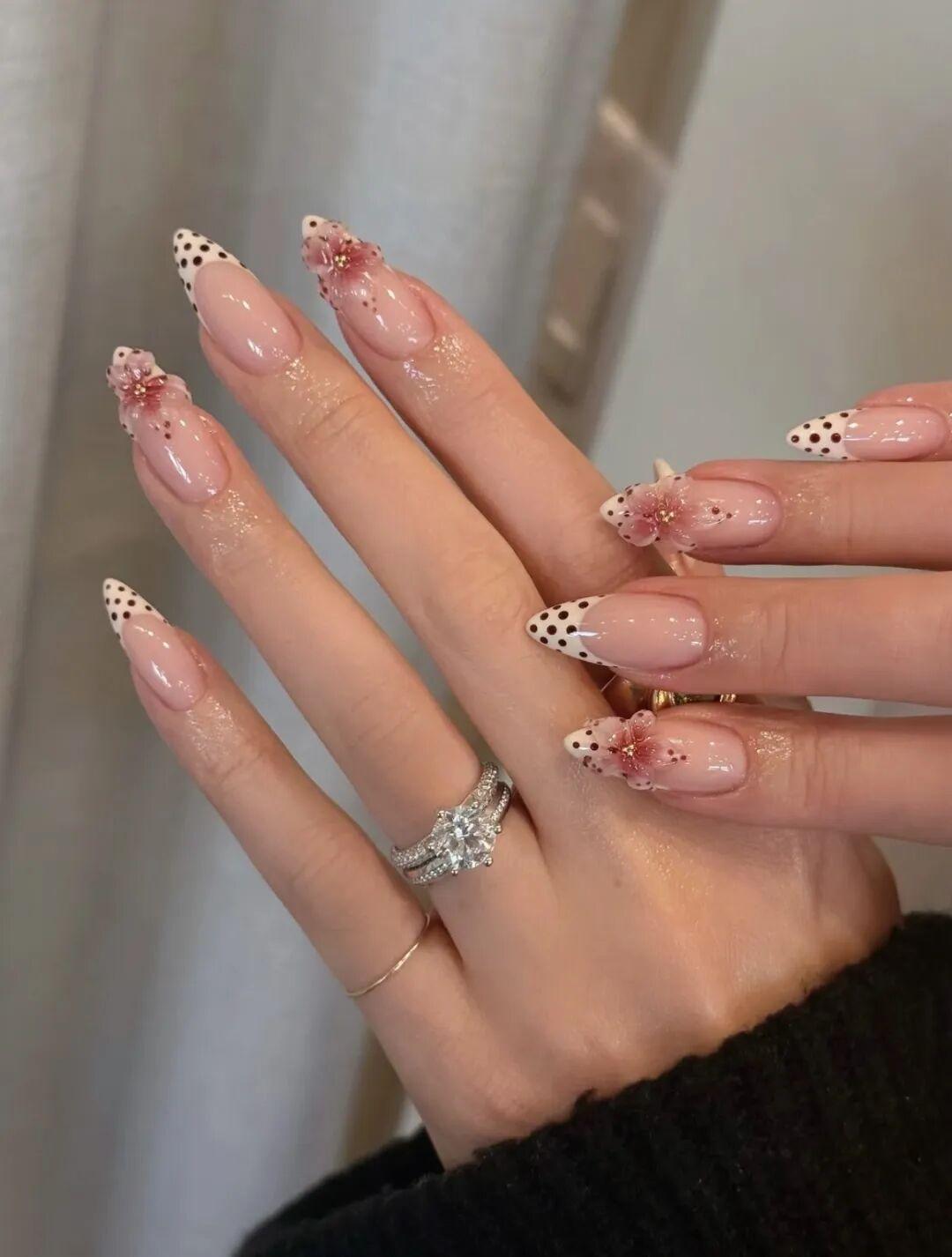 比如粉色可愛系的美甲,