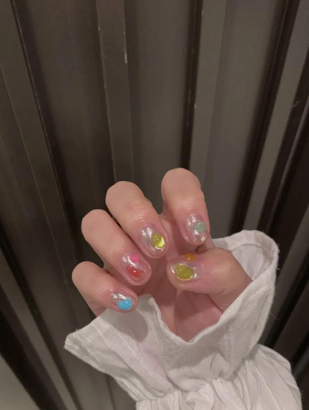 比如透綠、淡水藍美甲搭配銀色首飾,
