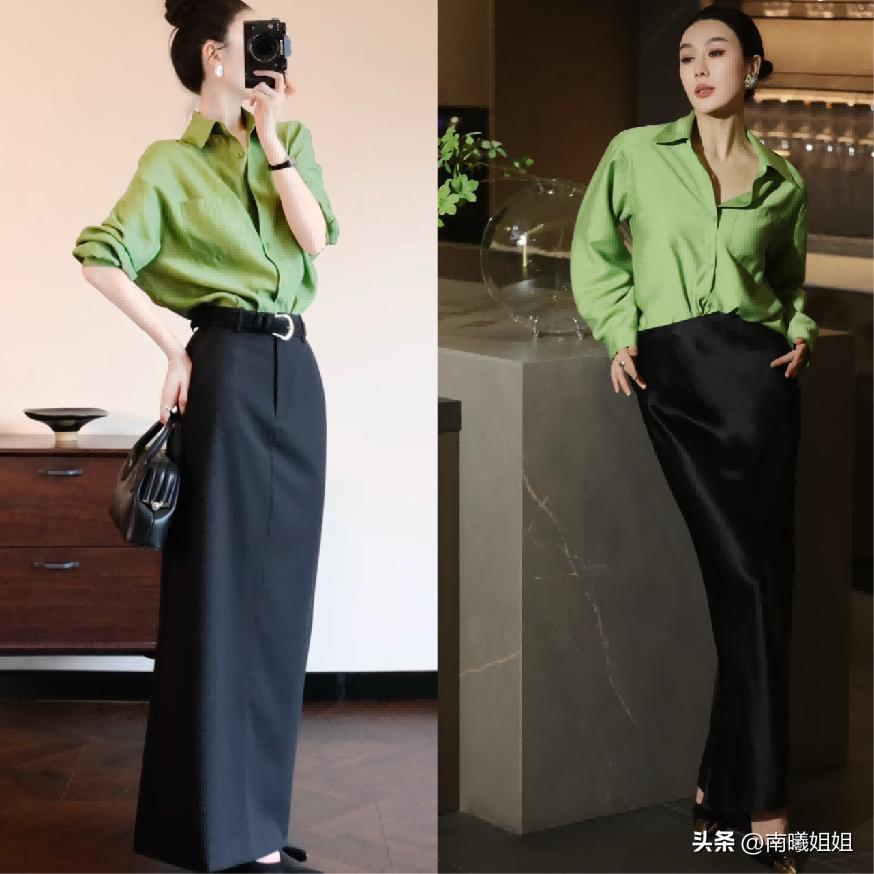 第2種單品的類型,其實就非常適合多多選擇運用一些比較極具優雅,簡約氣質狀態的長裙,例如像醋酸裙,或者是垂感較重的一些長款的裙裝來進行搭配。松綠色它本身所襯托出來的高級清新的感覺也是比較明顯的,所以選擇這一種色系的裙子,能夠將我們整體的氣質都映射的非常的極具高級和優雅又溫柔的走向。