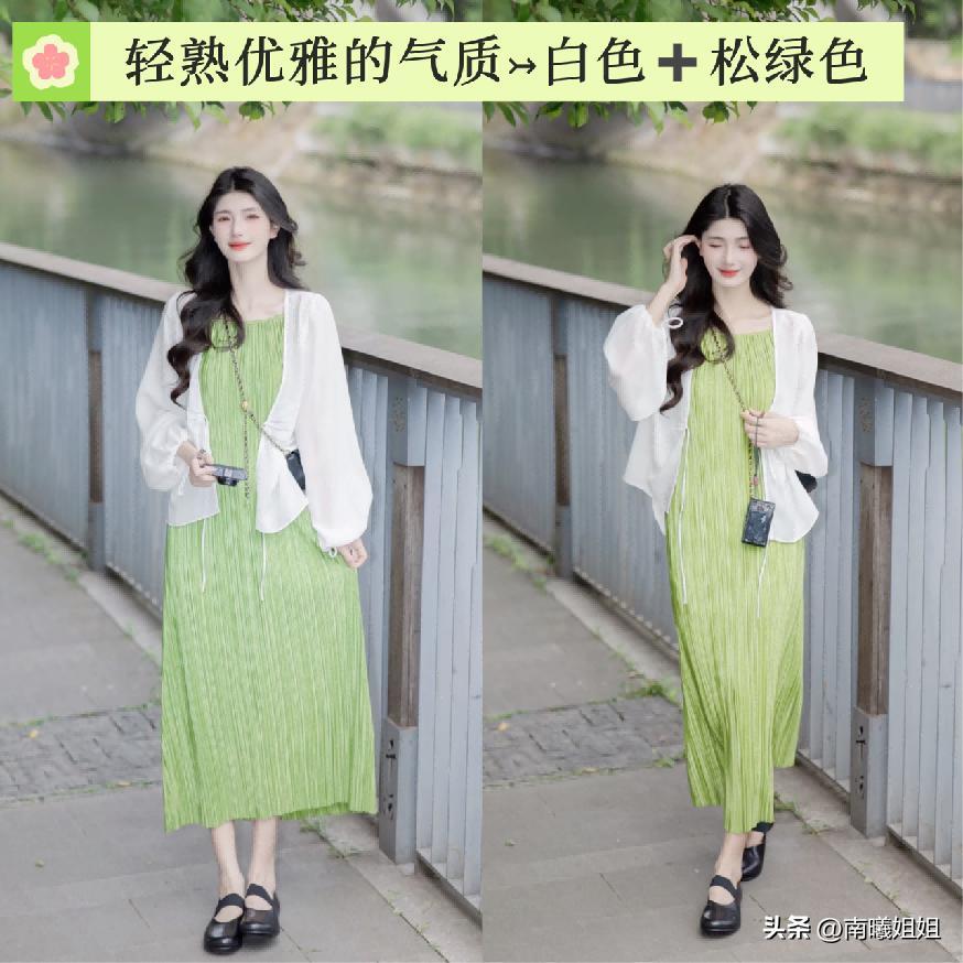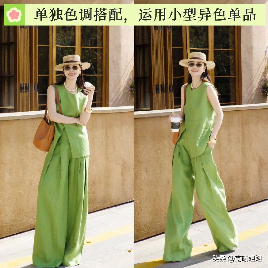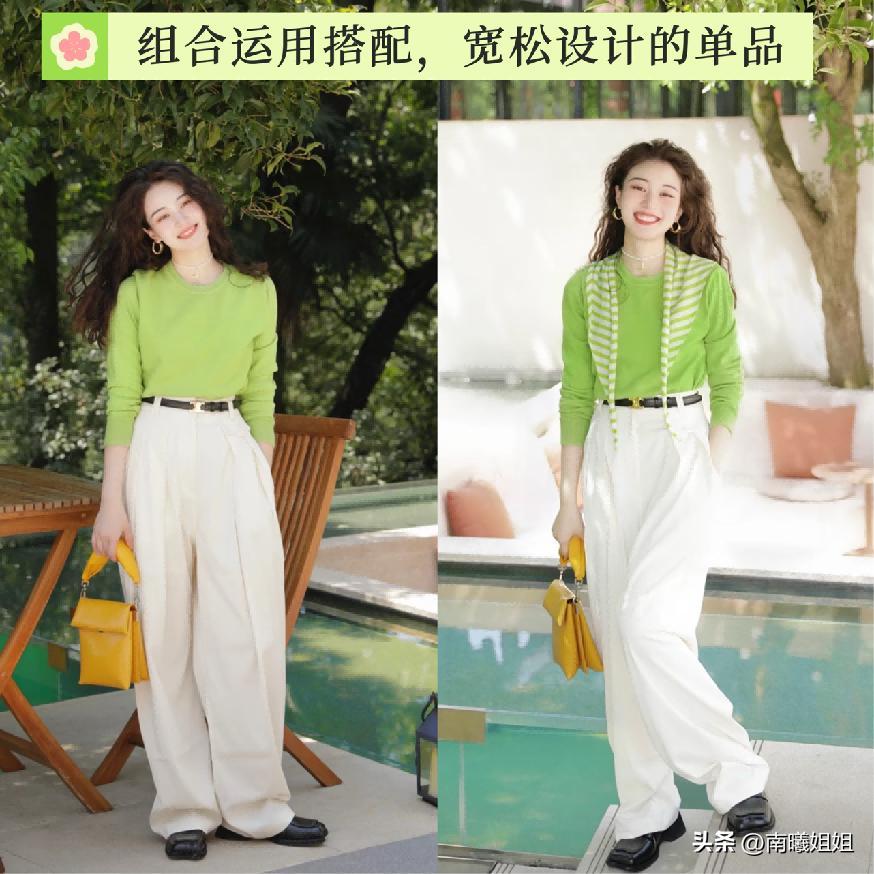 當然了,像這樣的搭配,我們也可以穿的更加極具優雅和簡約,而且能夠凸顯高級感爲主,尤其是對於30多歲的女性而言,綠色和白色系列的搭配可以很輕而易舉的就呈現出清新減齡,又輕熟的氣質走向,非常的具有美感。