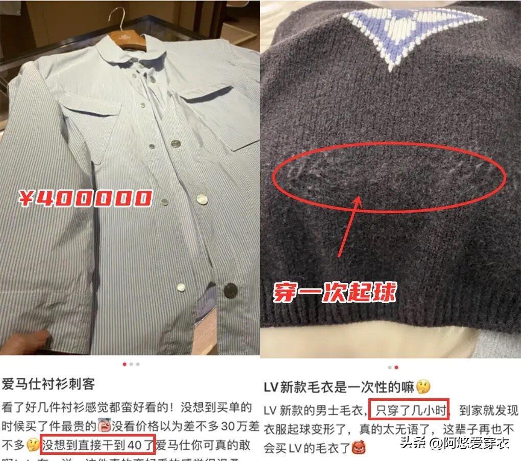 尤其是愛馬仕、lv這些國際奢侈大牌的衣服,隨便一件基礎款襯衫、毛衣都得四位數,可實際上的質量並沒有好到哪裏去,甚至不如我們國內的百元小衆品牌。