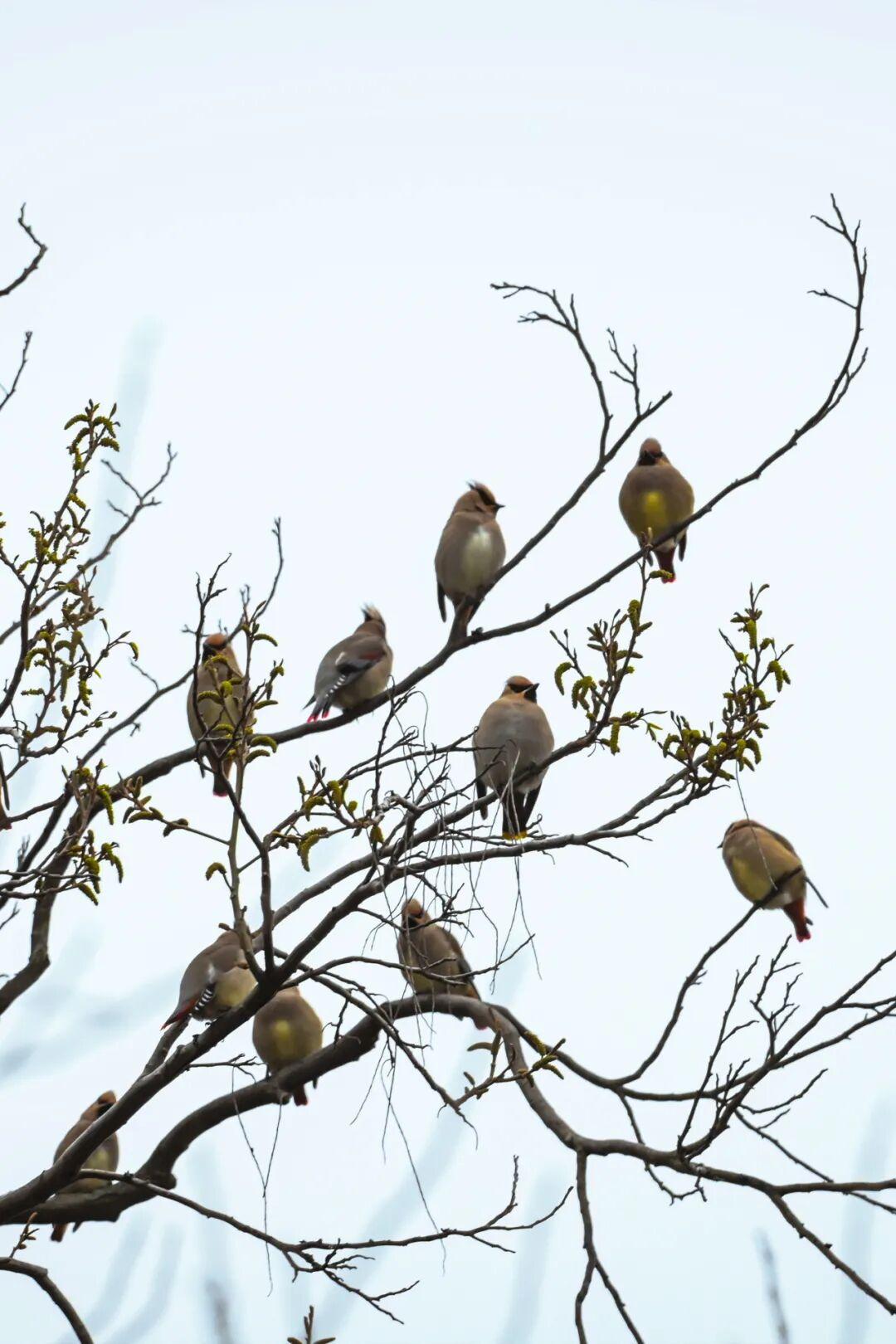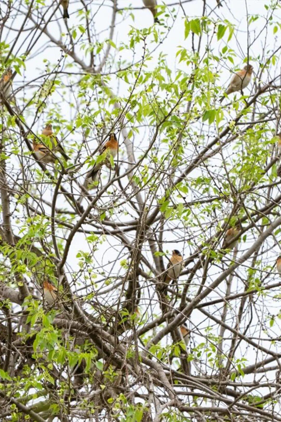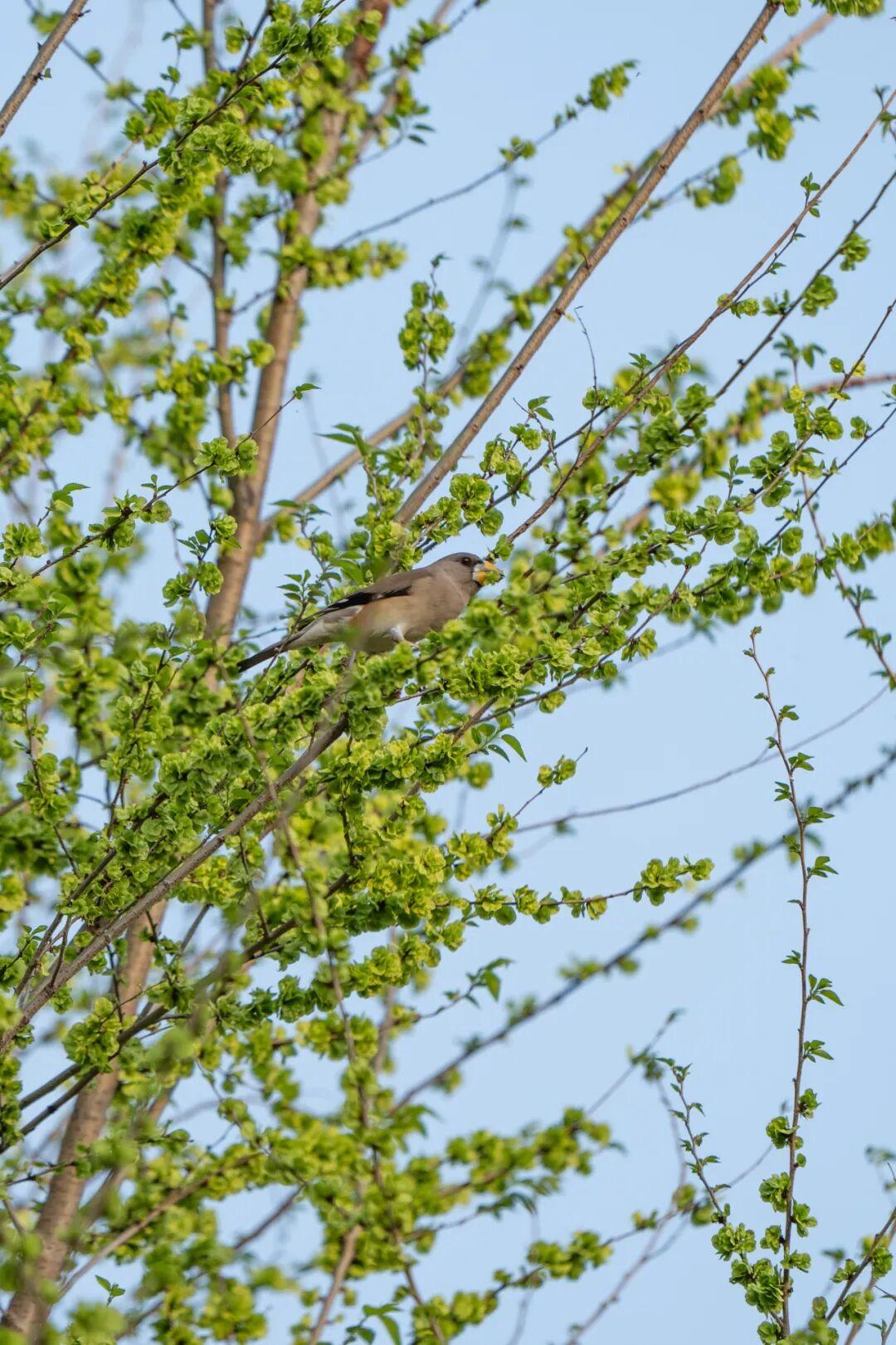 春天公園的一切植物甦醒了,滿樹的榆錢成爲小鳥的季節限定食堂,黑尾蠟嘴雀和燕雀大軍都是這裏的常客;夏天除了常駐民,這裏偶爾也會來一些稀客,小太平鳥和蟻鴷匆匆停留;
