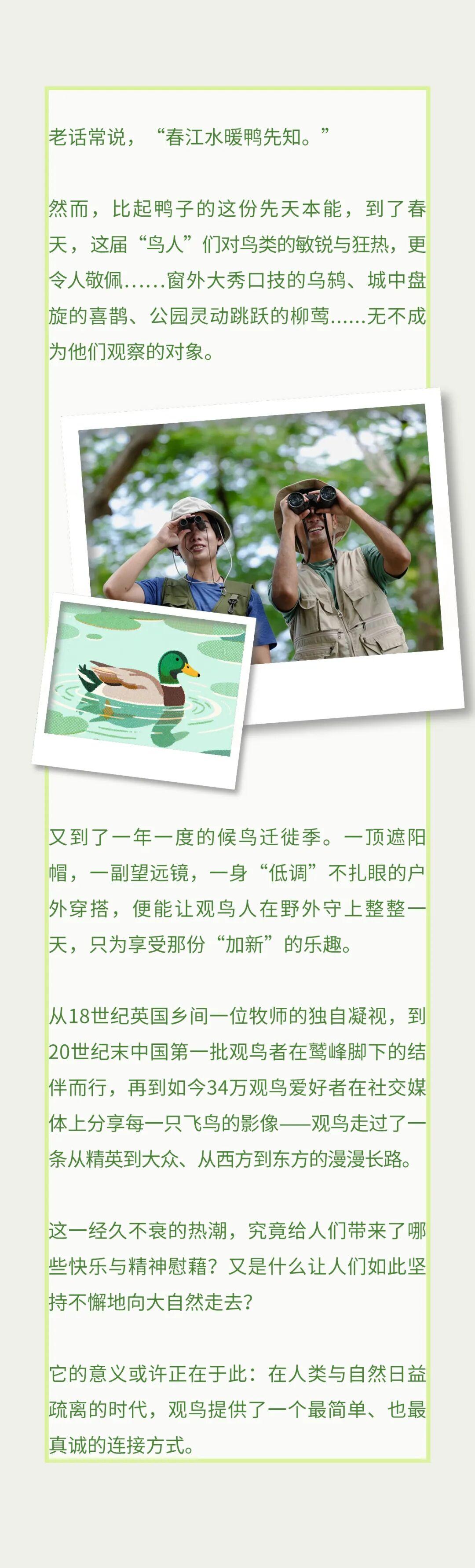 若把健身鍛鍊比作“快樂的高強度衝刺”,那麼觀鳥更像是一場“舒緩而持續的心理散步”——這種鬆弛的情緒狀態,更利於緩解快節奏城市生活的壓力。