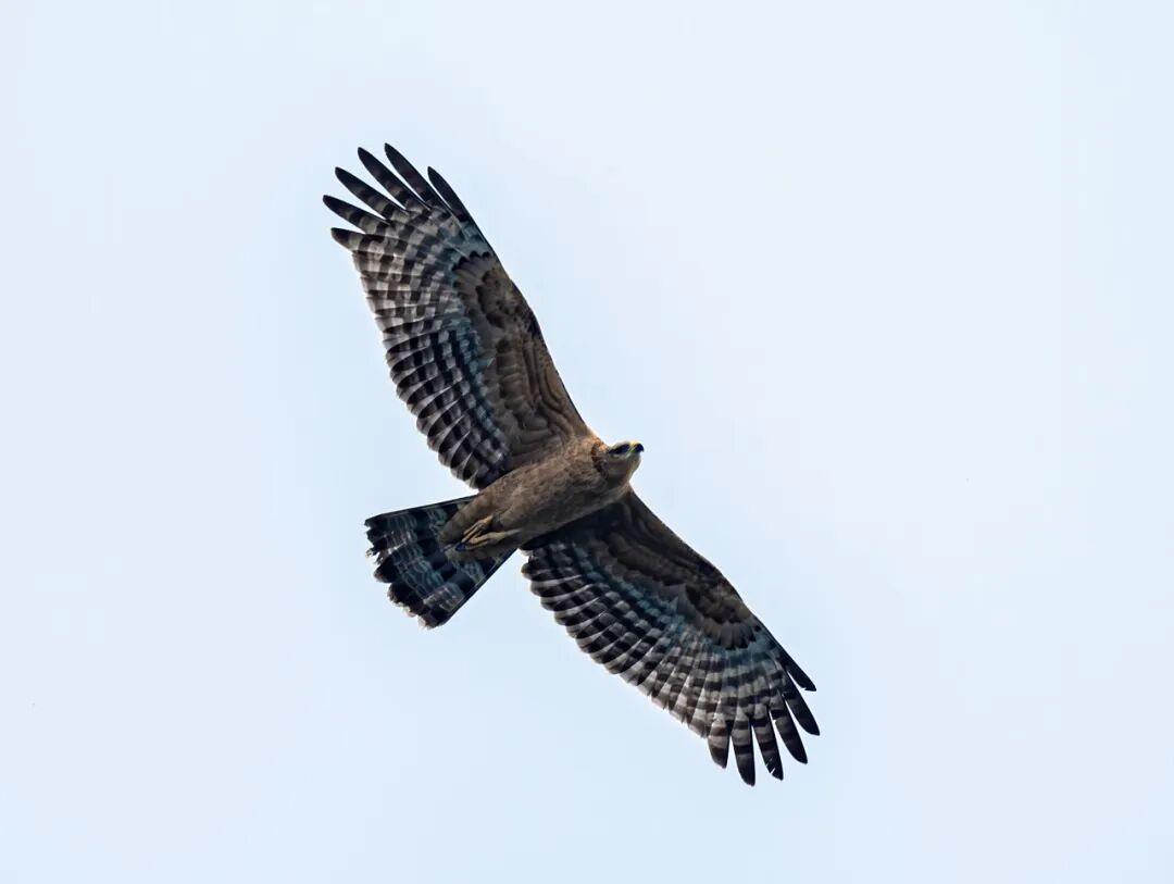 在都統巖猛禽監測點,當時正值鳳頭蜂鷹遷徙高峯,但天氣陰冷,飄着小雨。本以爲這種不適合飛行的天氣不會有蜂鷹大軍出現,結果雨停後,大批蜂鷹從山頭升起,又滑翔進山谷,到眼前的山頭時,就像瀑布一樣傾瀉而下,非常震撼。由於溫度低且逆風,它們飛得很慢、很低、很艱難,在大風裏奮力振翅,有的甚至被風吹得在空中“定格”。