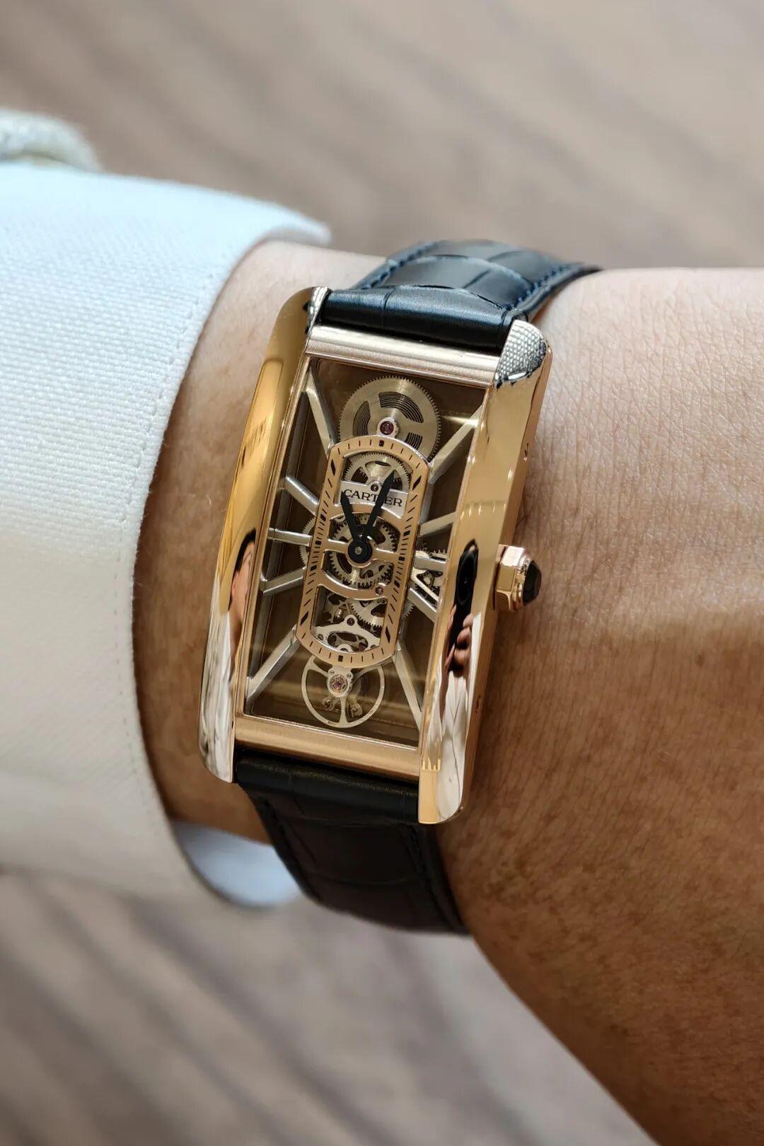 Tank家族非常龐大,今年還有兩塊讓老公愛不釋手。一塊是鏤空錶盤設計,機芯像是“懸浮”在錶盤當中,透視感超強。