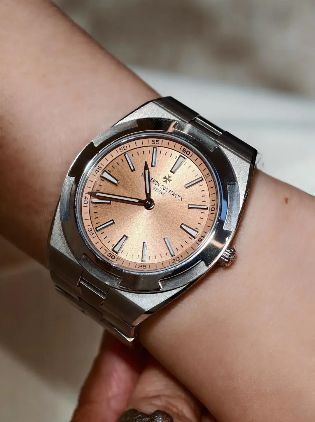 首次通體採用硬度比傳統鉑金高2.7倍的特殊950鉑金,貴而不嬌、薄而不脆,足以陪你真正“縱橫四海”。老錢風拉滿的鮭魚色漆面錶盤,讓人一秒淪陷。39.5mm表徑、快拆錶帶“一表三戴”,最配精裝男士,江詩丹頓CEO戴的就是這一枚。