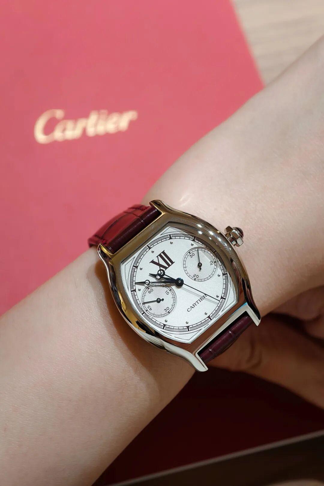 Cartier Privé系列是每年的重頭戲。今年爲慶祝10週年,卡地亞推出Privé Les Opus系列,均採用鉑金錶殼搭配勃艮第紅,辨識度超高。
