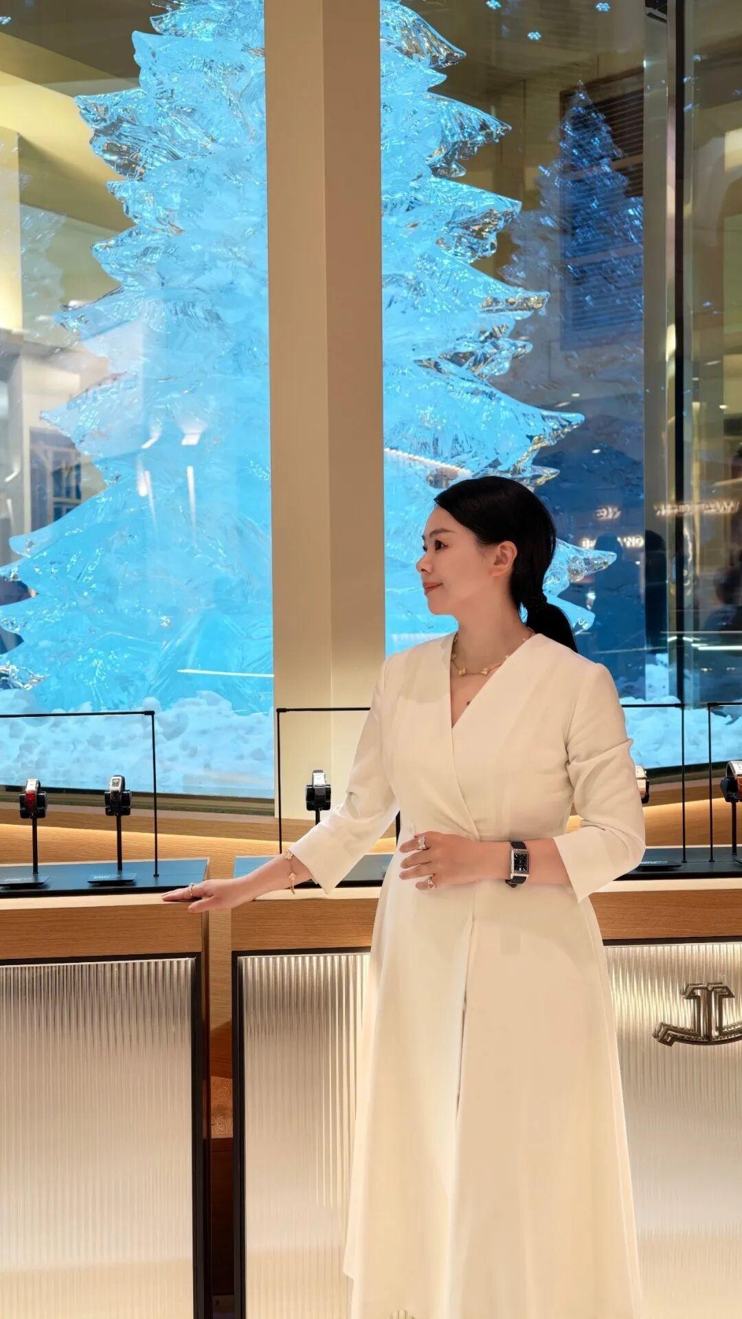 館中央立着一棵巨大的冰雕松樹,旁邊是高山木屋,米其林二星主廚現場做奶酪小食,瞬間喚起範主對山谷風景的回憶。