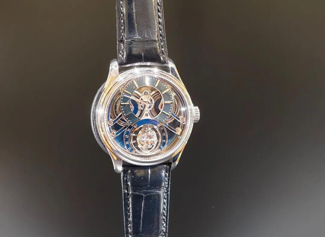 我還上手了兩枚超卓複雜功能大師系列作品。限量只有10枚超薄三問,錶殼厚度只有8.25毫米,內部是世界上最薄的自動上鍊三問報時陀飛輪機芯,戴上之後輕薄到讓人懷疑自己的觸覺。