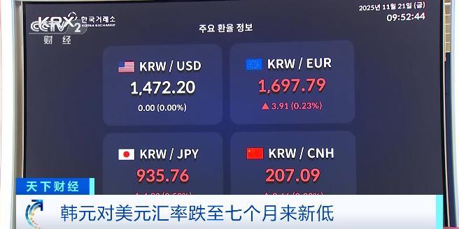 (央視財經《天下財經》)韓國的能源和食品等高度依賴進口,近期韓元對美元匯率大幅下跌,不僅導致韓國國內油價明顯走高,進口物價也創9個月來最大漲幅。
