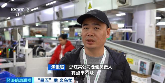 浙江某公司倉儲負責人 焦俊超:“雙十一”之後再準備“黑五”有點來不及,我們提前把倉庫幾個部門的人全部集中到海外倉部門,一起把“黑五”的貨準備了出來。