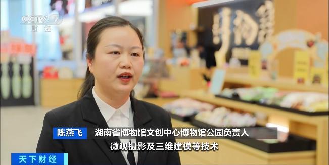 湖南省博物館文創中心博物館公園負責人 陳燕飛:我們首先通過高精度掃描、微觀攝影及三維建模等技術,對馬王堆文物中的紋樣、文字等核心美學元素進行精準採集與提取,形成原始數字素材庫。通過聯手簽約設計師、插畫師進行二次創作,使其既保持文化基因,又符合當代審美,創造了實物、產品加數字的新型消費體驗。