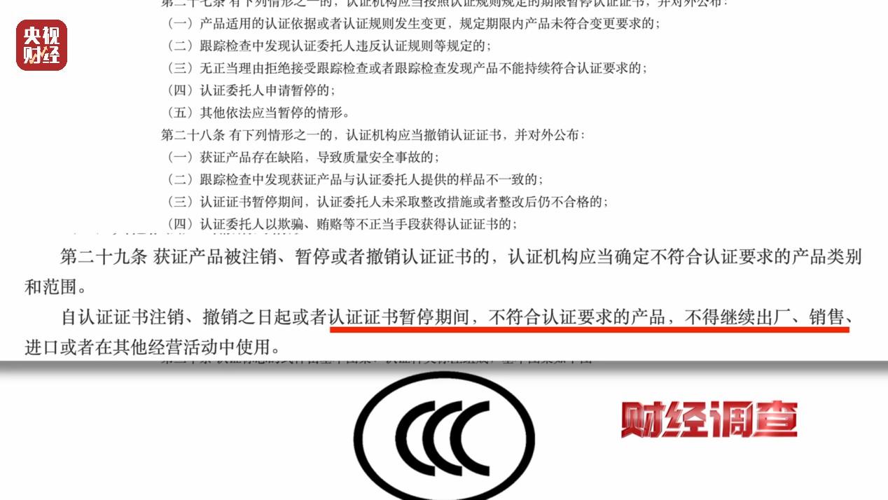 這位樺薇科技有限公司的企業負責人向記者展示了企業的3C認證證書,記者覈驗後發現證書已被暫停。