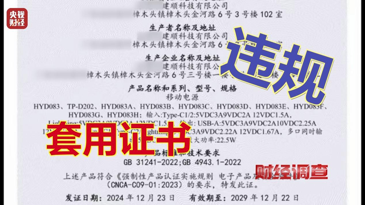 爲了躲避監管,工廠有時會套用合規工廠的3C認證證書,在出廠產品的外殼和包裝上打上合規工廠的廠名和地址。