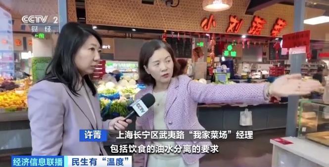 上海長寧區武夷路“我家菜場”經理 許菁:滿足消防噴淋的要求,包括飲食的油水分離要求,我們都是在最小範圍內能夠做到最好的展示。