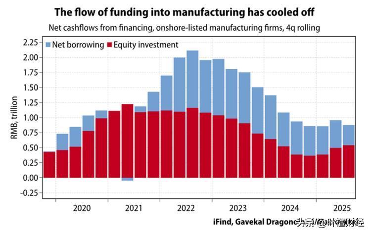 據Gavekal Research的統計,中國的反XX政策正在抑制過度投資,數據顯示製造業融資與股權投資自2022年高點回落後,正趨於穩定。