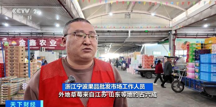 浙江寧波果品批發市場工作人員:目前本地草莓供應量約佔四成,外地草莓來自江蘇、山東等地約佔六成,價格比剛上市時下降50%。