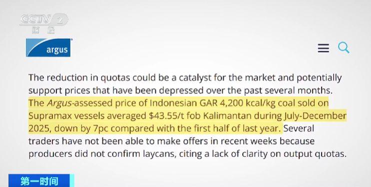 (央視財經《第一時間》)全球最大動力煤出口國——印度尼西亞,近期釋放出一個重要信號:印尼政府計劃今年(2026年)大幅削減煤炭產量。原因是什麼?對國際煤炭市場將造成多大沖擊?