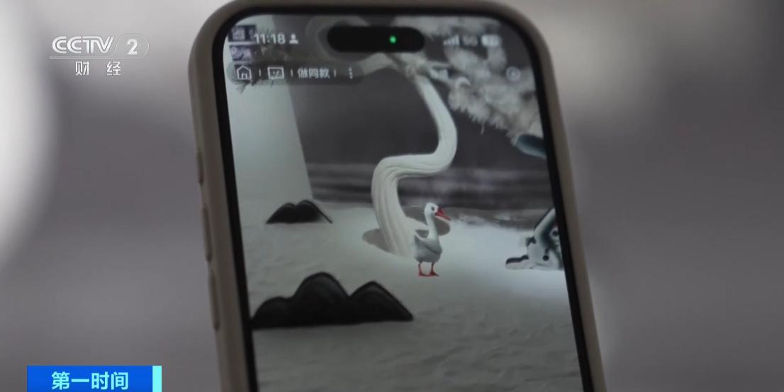 本次《中國奇譚》“造夢奇境”展覽不僅還原了中式美學場景,更結合展中劇、3D互動魔鏡、AI互動、AR虛擬等技術手段,進一步豐富觀衆的現場體驗。在《鵝鵝鵝》劇集展區,打開手機就能看到有數只大鵝在展區中踱來踱去。