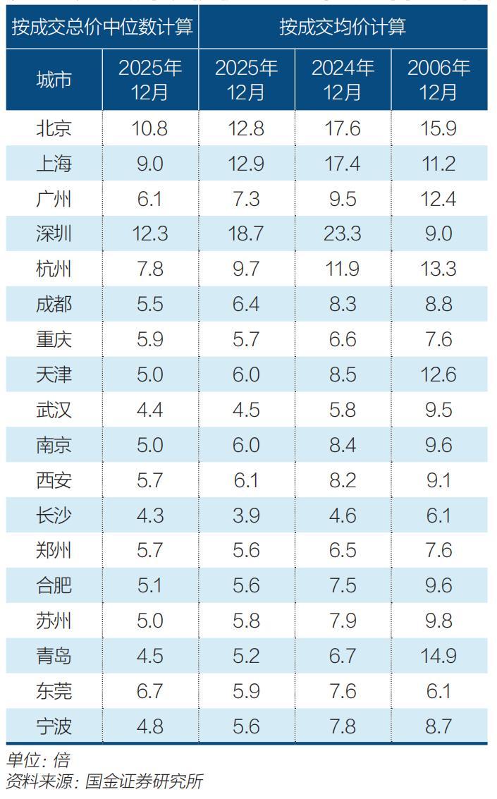 國金證券研報指出,從房價累計跌幅、租金回報率、房價收入比等長期因素看,當前多數城市的房地產市場接近估值底部,疊加核心城市住房總需求已於2025年企穩,這意味着樓市已初步具備止跌回穩的條件。