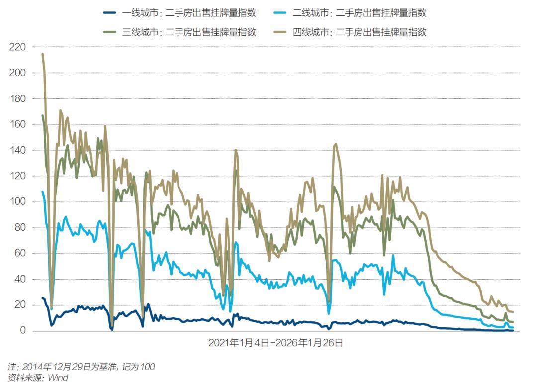 2026年1月,全國二手住宅掛牌價環比降幅從此前半年的1.3%左右收窄至0.7%;一二三線城市二手房掛牌價格月環比跌幅較2025年底時分別收窄0.2%、0.1%、0.1%。