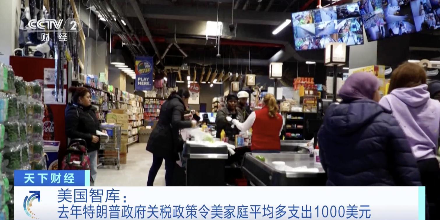 (央視財經《天下財經》)據美國廣播公司9日報道,一家智庫最近發佈研究報告稱,2025年,特朗普政府實施的關稅政策令美國每個普通家庭生活成本平均增加約1000美元。