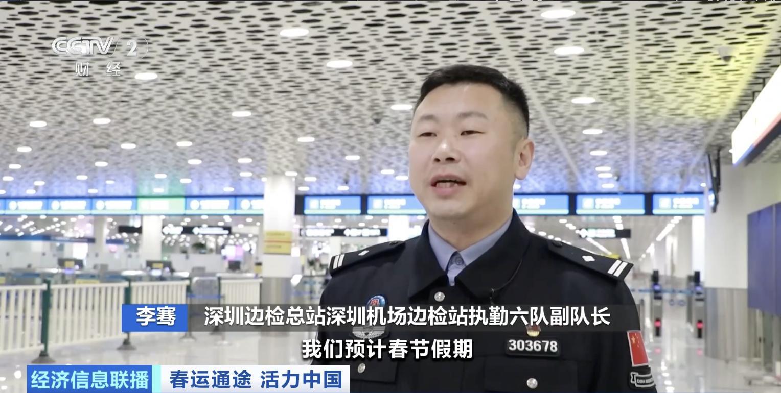 深圳邊檢總站深圳機場邊檢站執勤六隊副隊長 李騫:預計春節假期,深圳機場口岸出入境人員約18萬人次,出入境客運航班約1050架次。