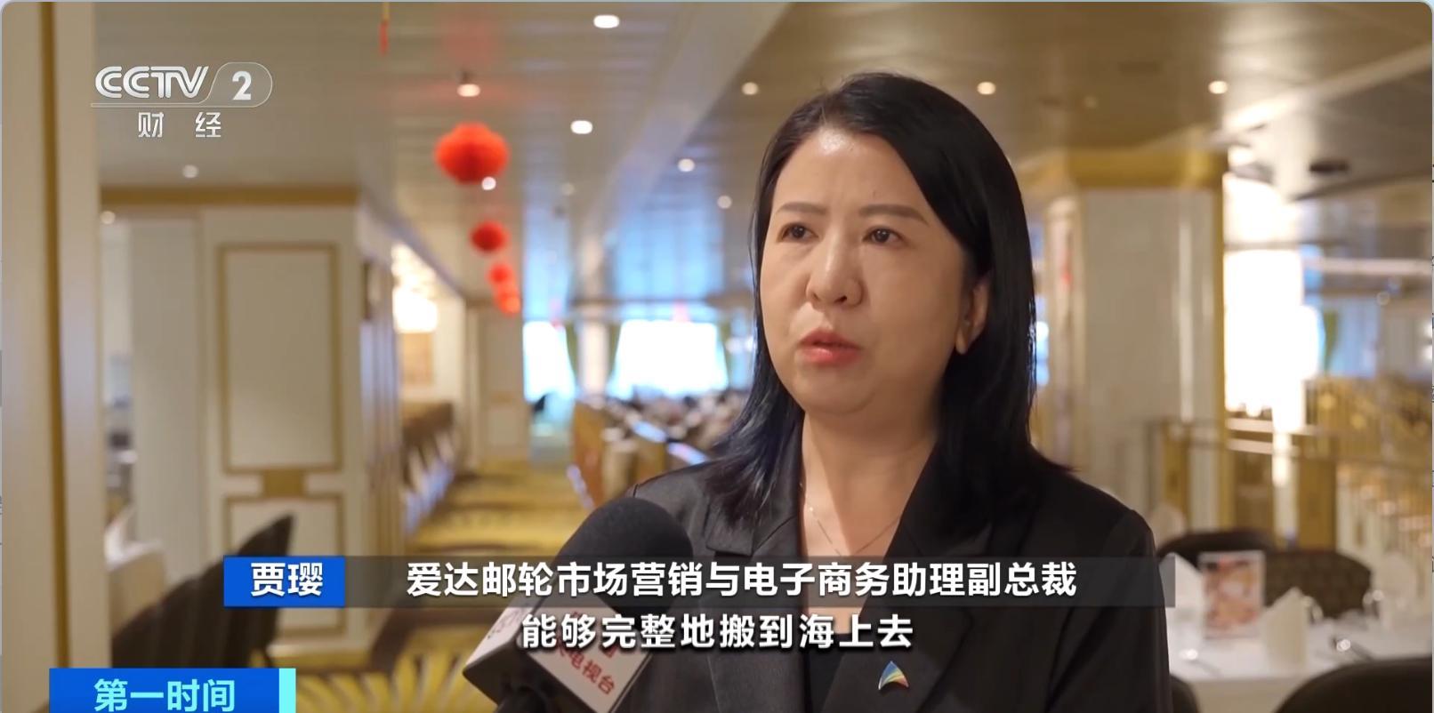 愛達郵輪市場營銷與電子商務助理副總裁 賈瓔:我們希望能夠把地道濃郁的中國年完整地搬到海上去,給我們的客人打造一個獨一無二的海上過大年的體驗。所以我們也推出了寓意吉祥的多種團圓飯套餐,上演備受喜愛的親子舞臺劇《愛達山海經•奇幻之旅》。
