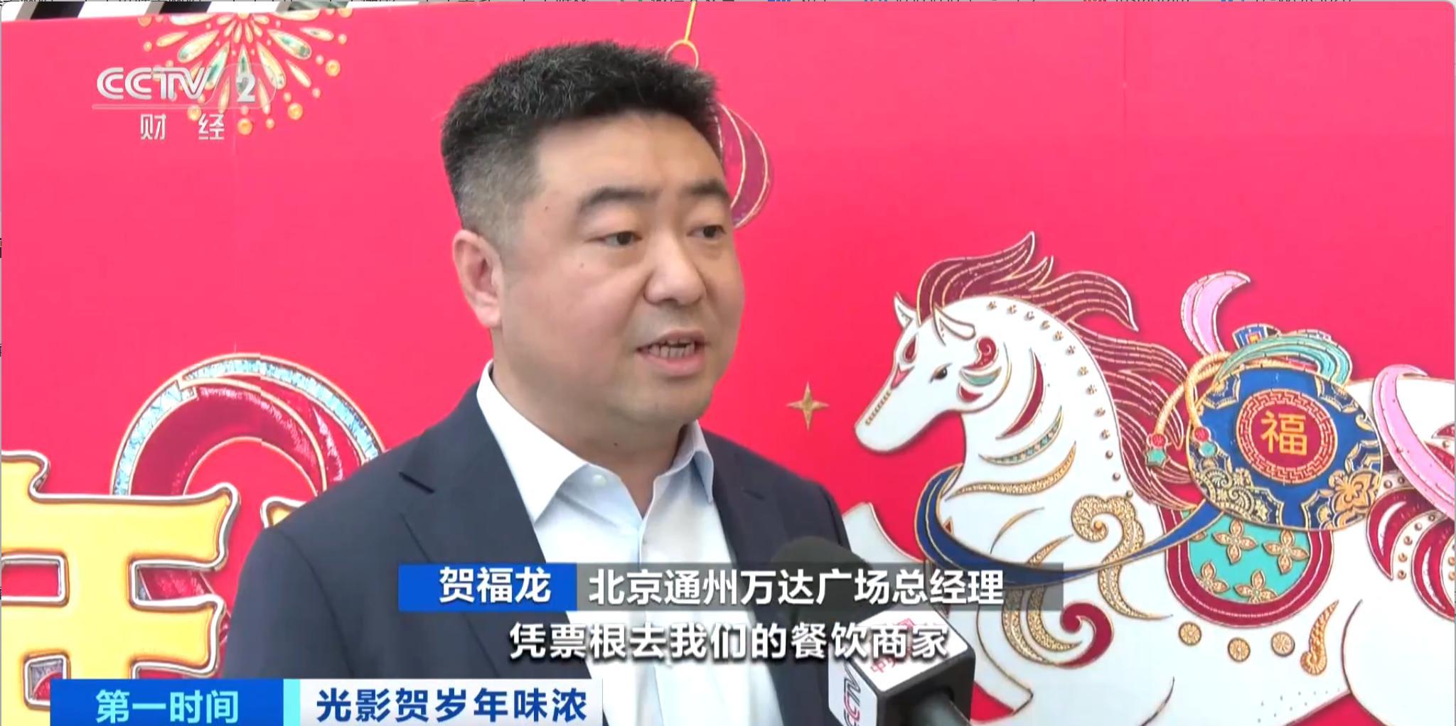 北京通州萬達廣場總經理 賀福龍:憑票根到本廣場的餐飲商家、零售商家、超市都可以享受不同程度優惠。影城還有早晚場19.9元的超值特惠和立減補貼的惠民活動。
