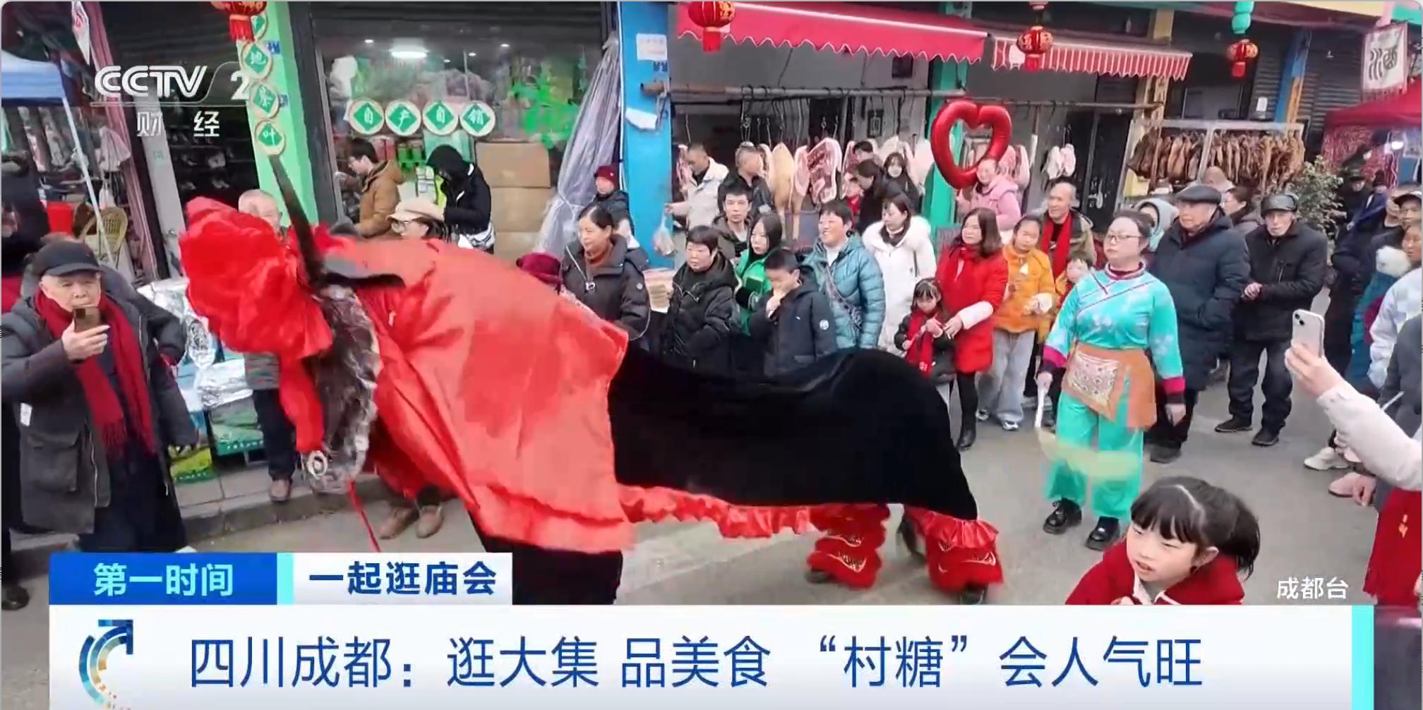 (央視財經《第一時間》)春節裏逛廟會,熱鬧喜慶。這個春節假期,四川成都各地正在上演“村糖”會。各類民俗表演、鄉村集市精彩紛呈,市民遊客在這裏品美食、看錶演,感受濃濃的年味兒。