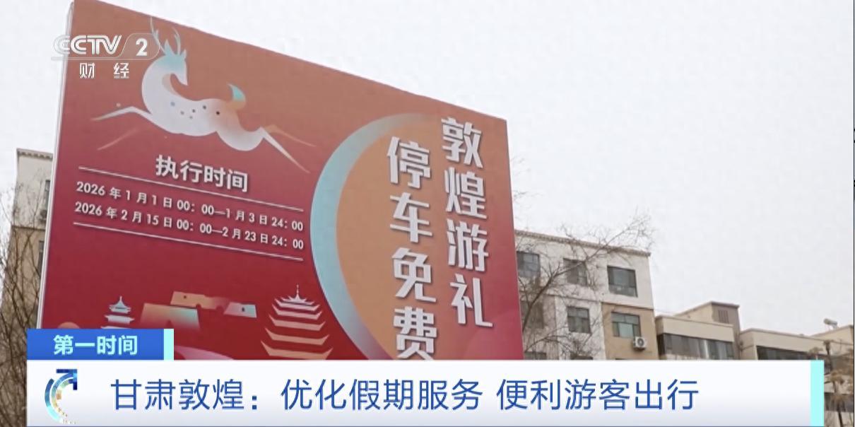 2月15日至2月23日期間,敦煌市行政機關、企事業單位和部分景區等60多座停車場向小型客車免費開放,當地還推行城市公交免費搭乘、交通管理柔性執法等措施,緩解交通壓力,便捷大家出行。