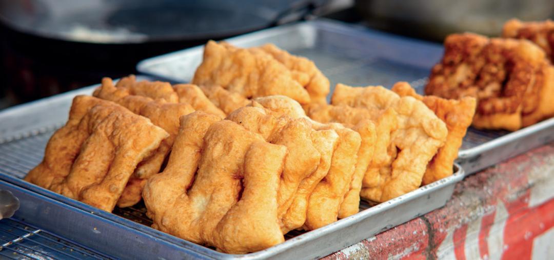 故鄉也有油炸的麪食,一般都在街鎮上,比如銅鼓餅(也叫蝦餅),面油炸後鼓起的扁圓形餅;最常見的跟北方的油條類似,不過故鄉方言叫“油石灰”。我小時候還奇怪,明明是和麪油炸成條,爲何叫“石灰”,很晚才知道自己鬧了笑話。那不叫“油石灰”,而叫“油炸檜”,它們的方言音一樣,傳說是因秦檜賣國害岳飛,人們將和好的面入油鍋炸,以“油炸檜”爲名,藉此泄對秦檜之恨。我小時候喫過“油炸檜”,不過大概只有兩三段,都是前黃豬陸時(豬仔交易的集市)祖父上街後帶回一根,給我們兄弟分享的。