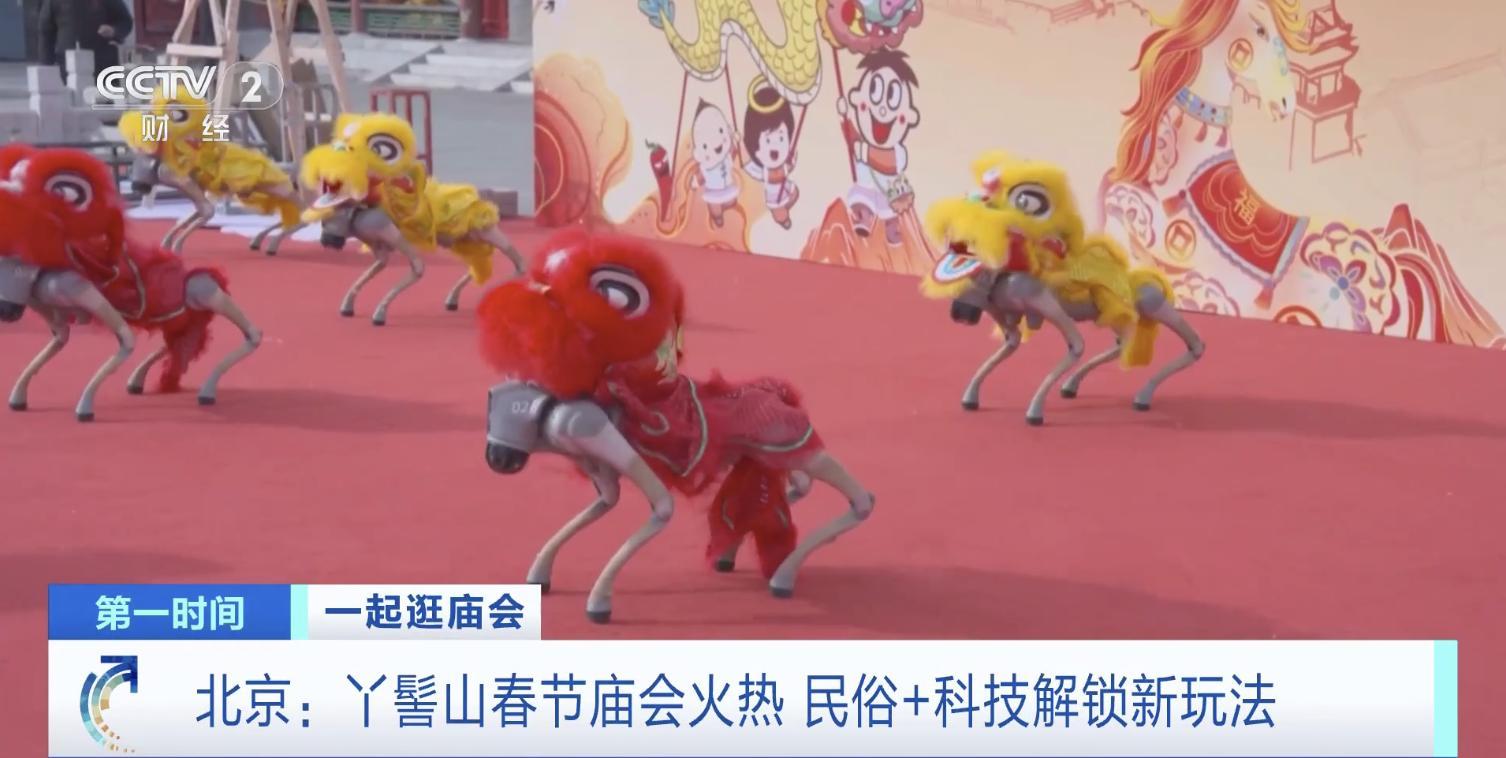 除了傳統節目之外,廟會融入的硬核科技,成爲本屆活動一大亮點。太極廣場專門開闢了“科技遊園會”體驗區,外骨骼登山機器人、機器狗拜年互動等項目,吸引大批遊客駐足。