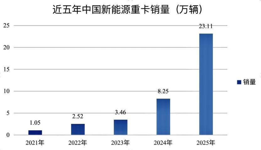 2025年,中國新能源重卡市場累計銷售23.11萬輛,同比增長182%。其中,幹線物流和港口運輸成爲核心增量場景。羅蘭貝格報告指出,隨着TCO下探拐點逼近、電驅效率顯著提升,新能源重卡的市場窗口已從政策驅動轉向供需結構驅動。