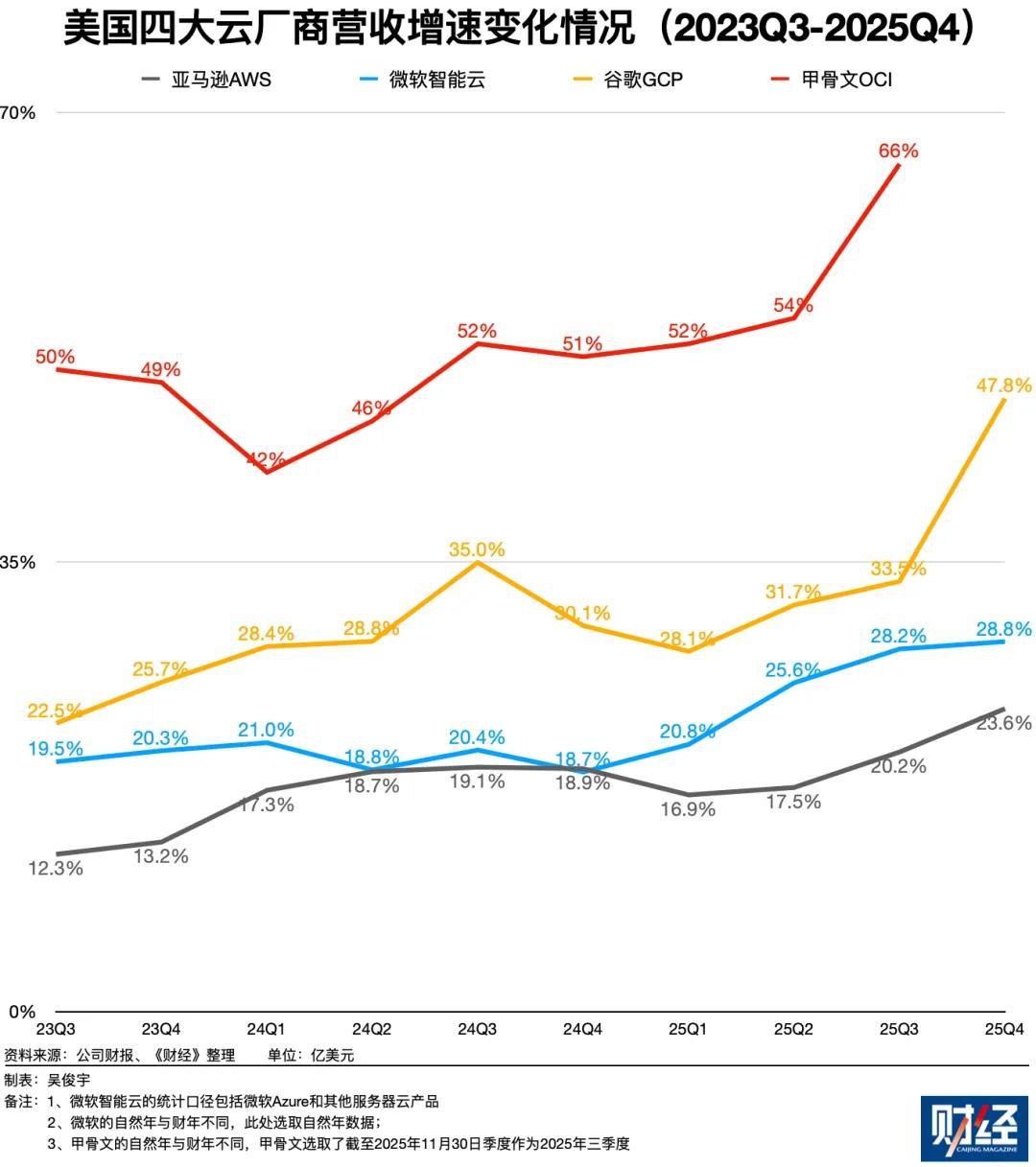 2025年以來,轉型AI雲正在成爲美國四大雲廠商——亞馬遜AWS、微軟Azure、谷歌GCP、甲骨文OCI的共同戰略目標。