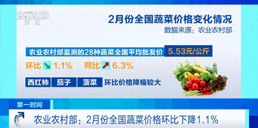 (央視財經《第一時間》)農業農村部最新數據顯示,2月份全國蔬菜價格環比穩中有降,市場供應能力持續增強。