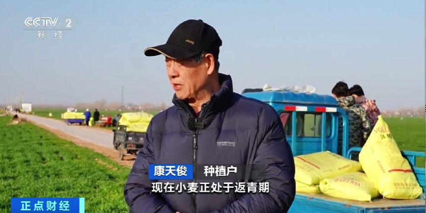 種植戶 康天俊:現在小麥正處於返青期。根據天氣預報瞭解到,最近有一次強降雨,現在把肥施上,對於小麥吸收水分、吸收肥料都起到很大作用。